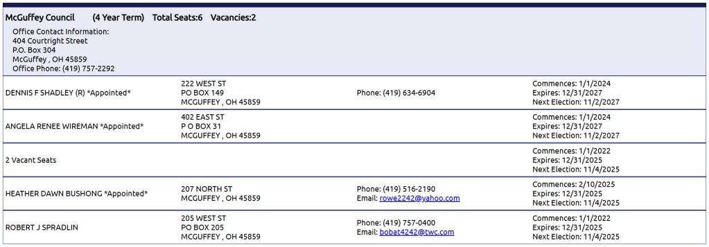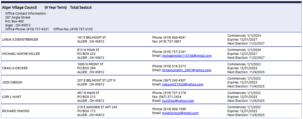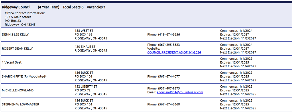 124 S. washington st, Mt. victory OH (North side of tracks)
